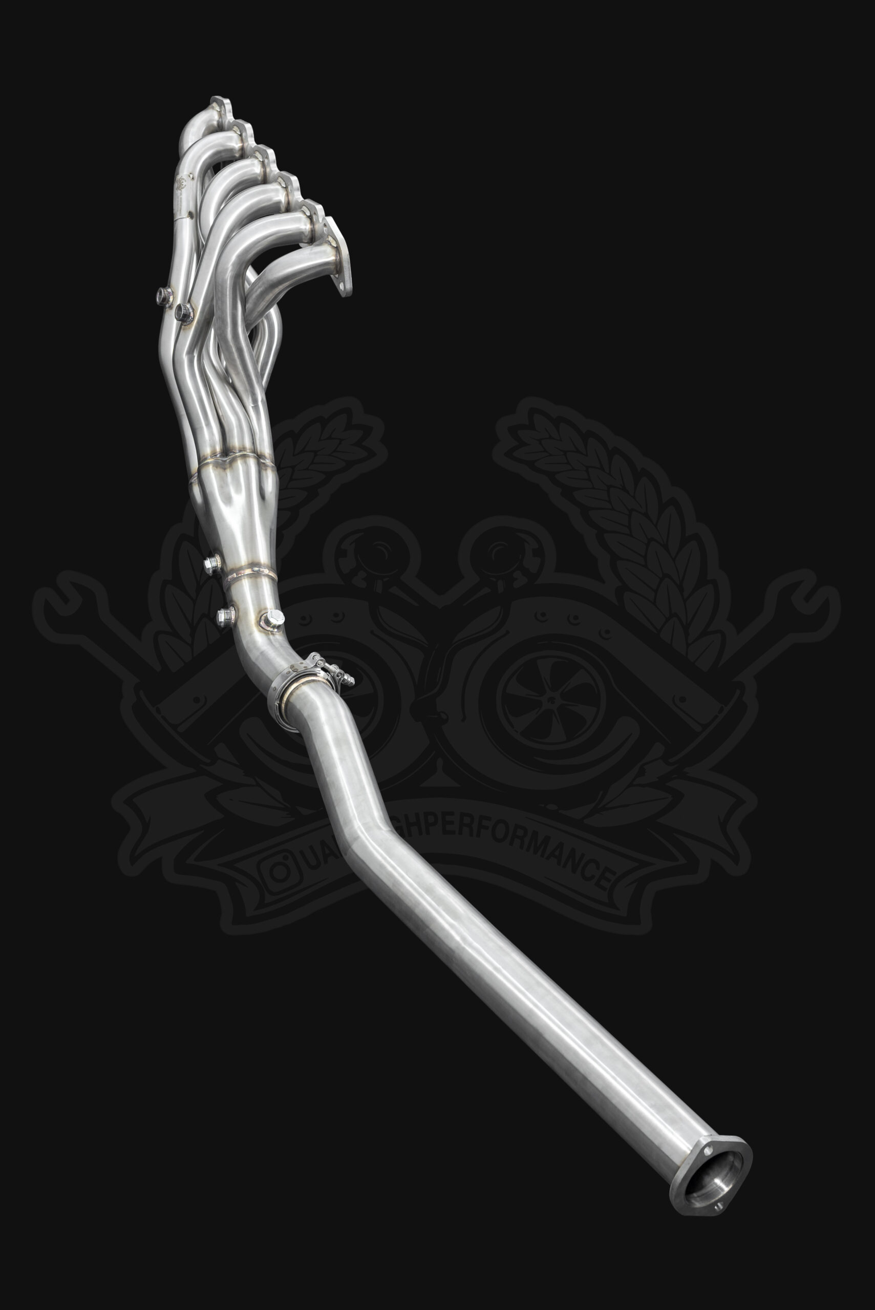 Long tube headers designed for the Nissan Patrol Safari feature equal-length tubing with a 6-in-1 parallel spike merge collector and a downpipe, perfectly fitting the OEM exhaust system. This package includes a V-Band clamp and four sensors, catering to the needs of the 2017 and newer models, with an additional fifth sensor for external ECU data readings. These headers have demonstrated exceptional efficiency and are recognized as the optimal choice for enhancing Nissan Patrol Safari performance.